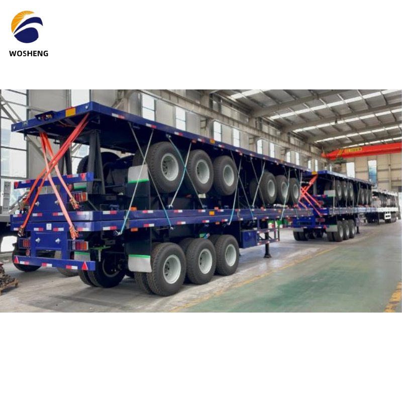 WOSHENG Factory high strength steel 3 Axle 40ft Container Trailer Flatbed Trailer for Sale
